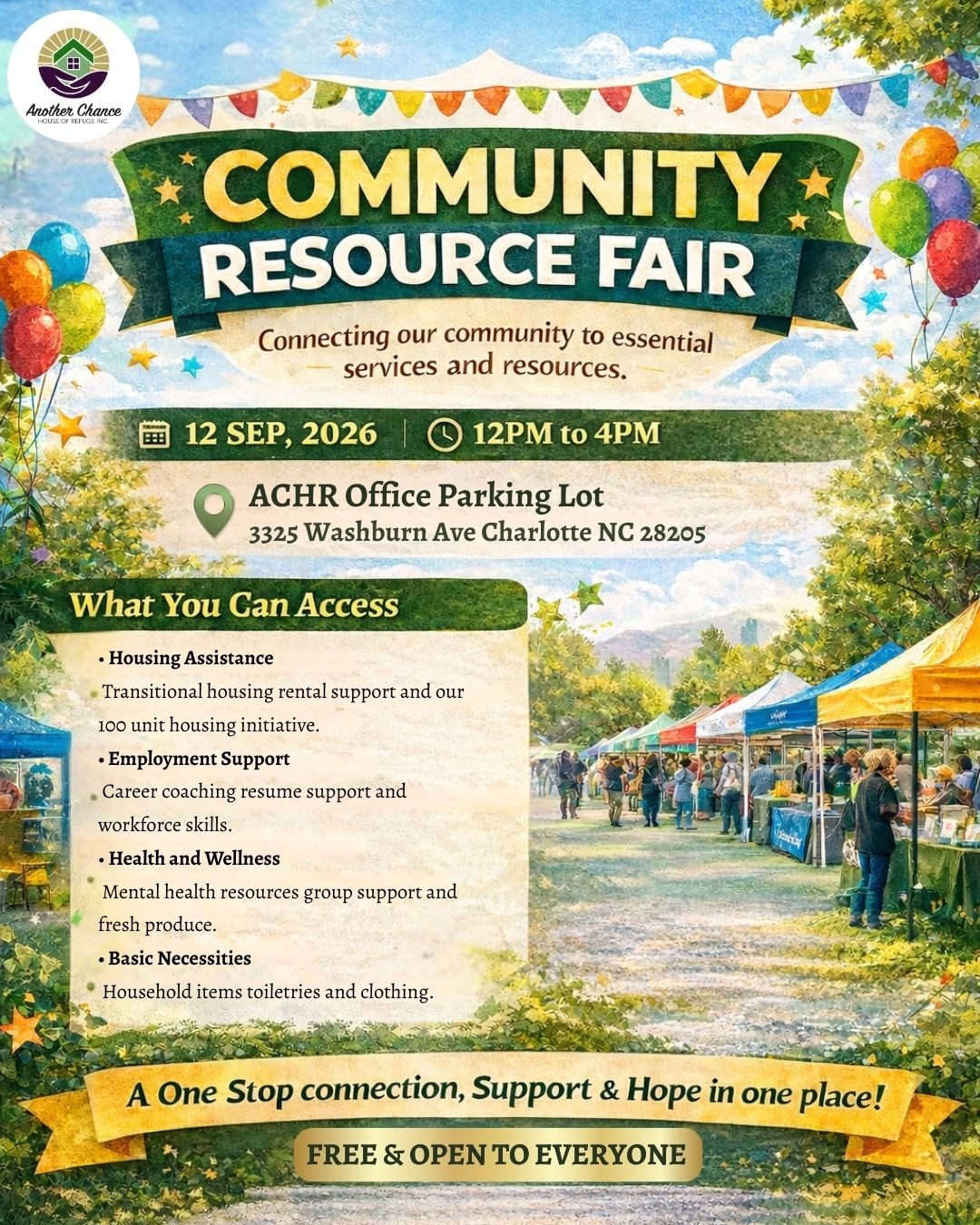 The mission of Another Chance: House of Refuge (ACHR) is to empower underserved individuals to reach their fullest potential. ACHR provides the following: